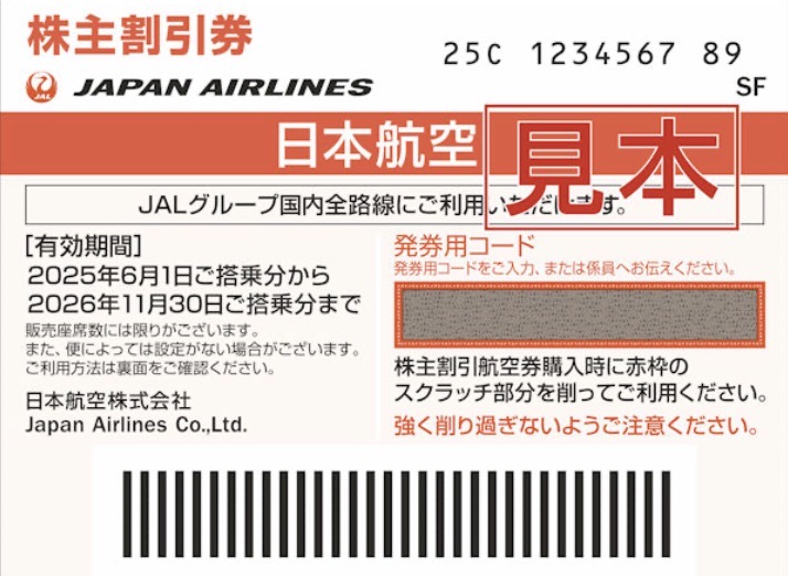 株主優待:100株保有で航空割引券1枚