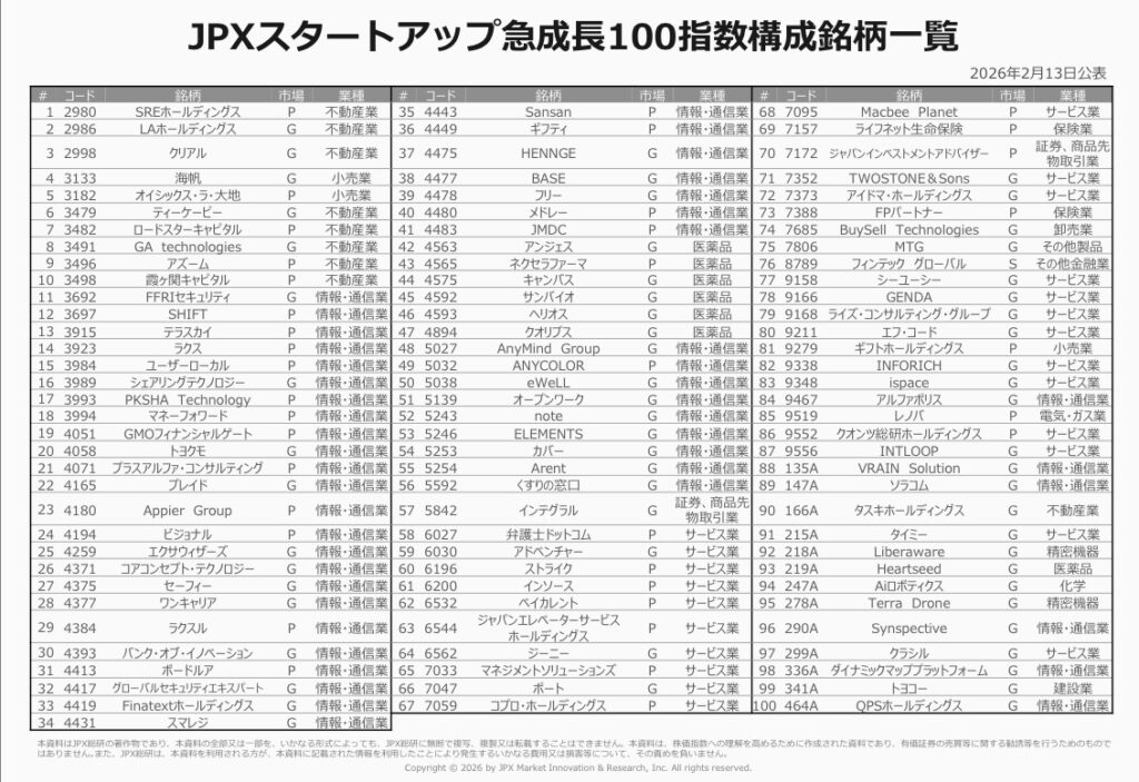 JPXスタートアップ急成長100指数とは?